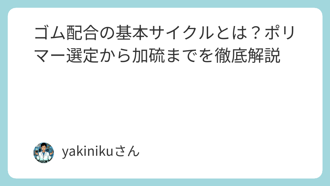 ゴム配合は、単に材料を混ぜるだけではありません。求められる製品スペック(硬度、引張強さ、耐油性など)を起点とした「設計・混練・加硫・評価」のサイクルを回すことが重要です。